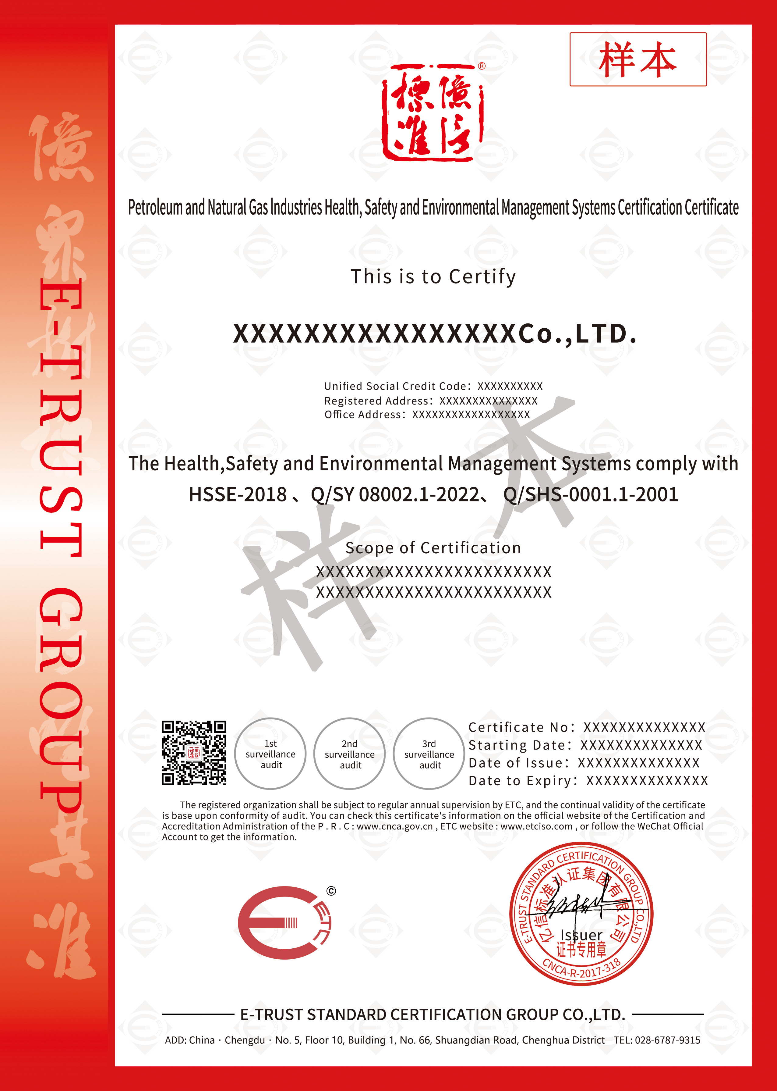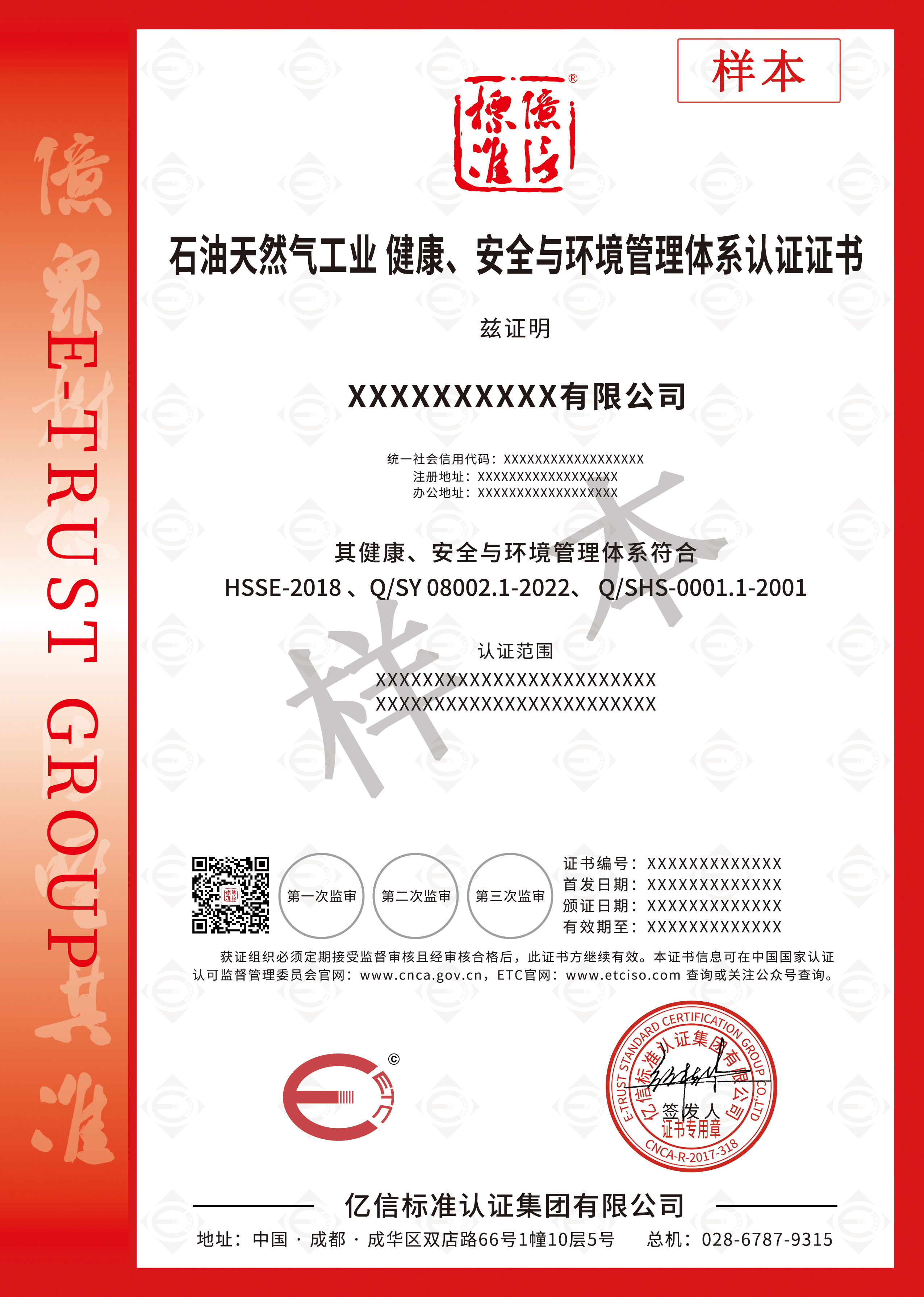 ETC|亿信标准认证集团起步于2005年,总部位于成都,已进驻包括四川、重庆、云南、贵州、浙江、陕西、黑龙江、安徽、湖北、湖南等多个省市,是NQI(国家质量基础设施)开拓者和领先者,已成为全国前10%的B级和西南品牌综合排名领跑的认证机构。拥有近300人的专业审核团队。