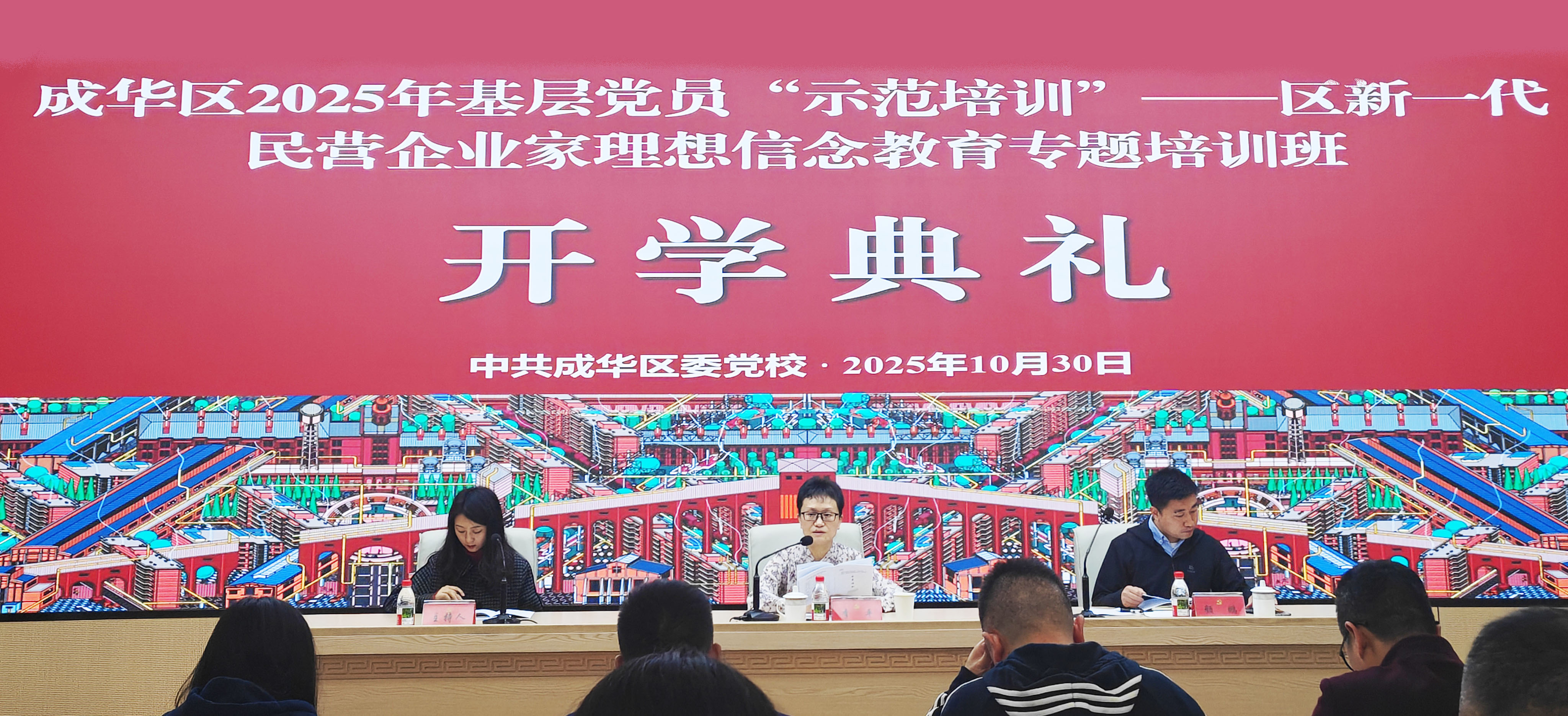 11月3日,区委组织部、区委社会工作部联合区委党校,共同举办的成华区2025年民营企业家理想信念培训班顺利开班。亿信标准创始人黄其作为优秀民营企业家代表,与成华区智能制造、文化创意等主导产业的优秀企业家代表,以及社会组织负责人、相关行业党委党务工作者共45人参加为期6天的培训。