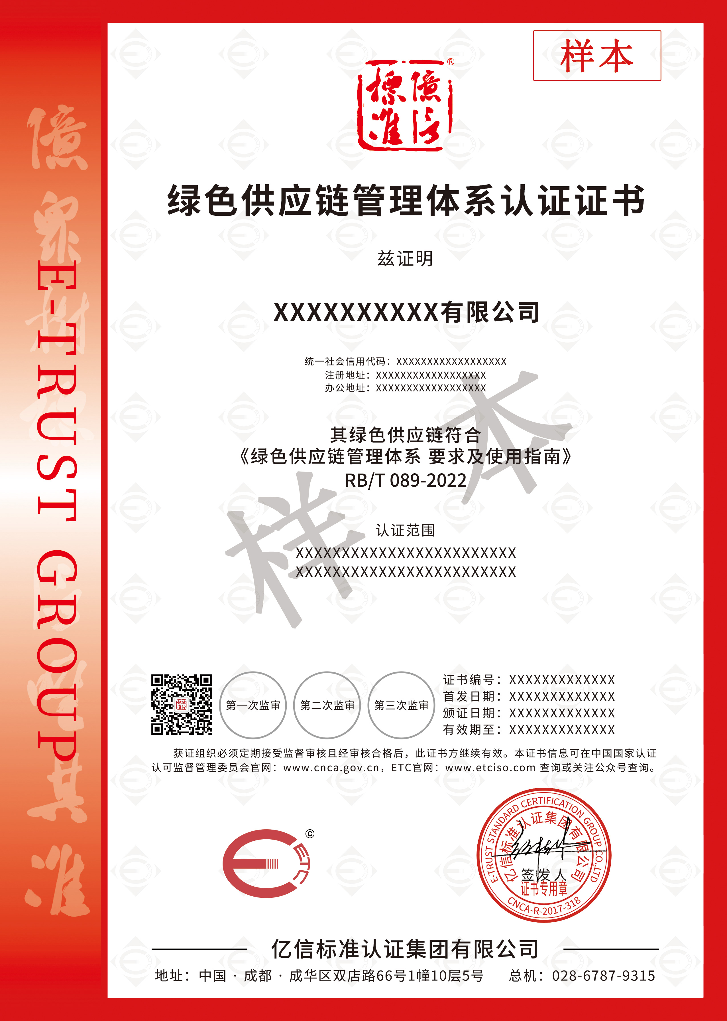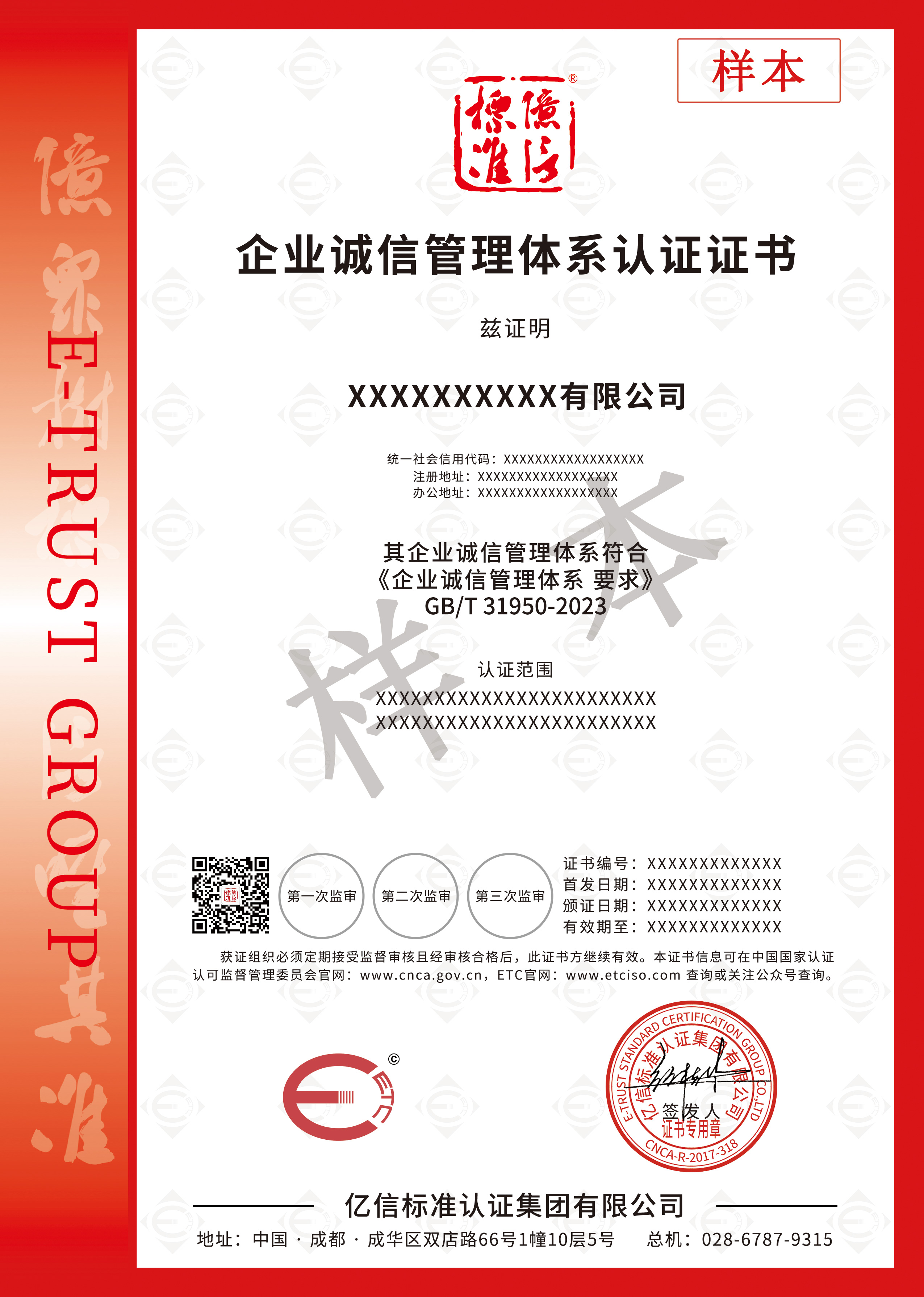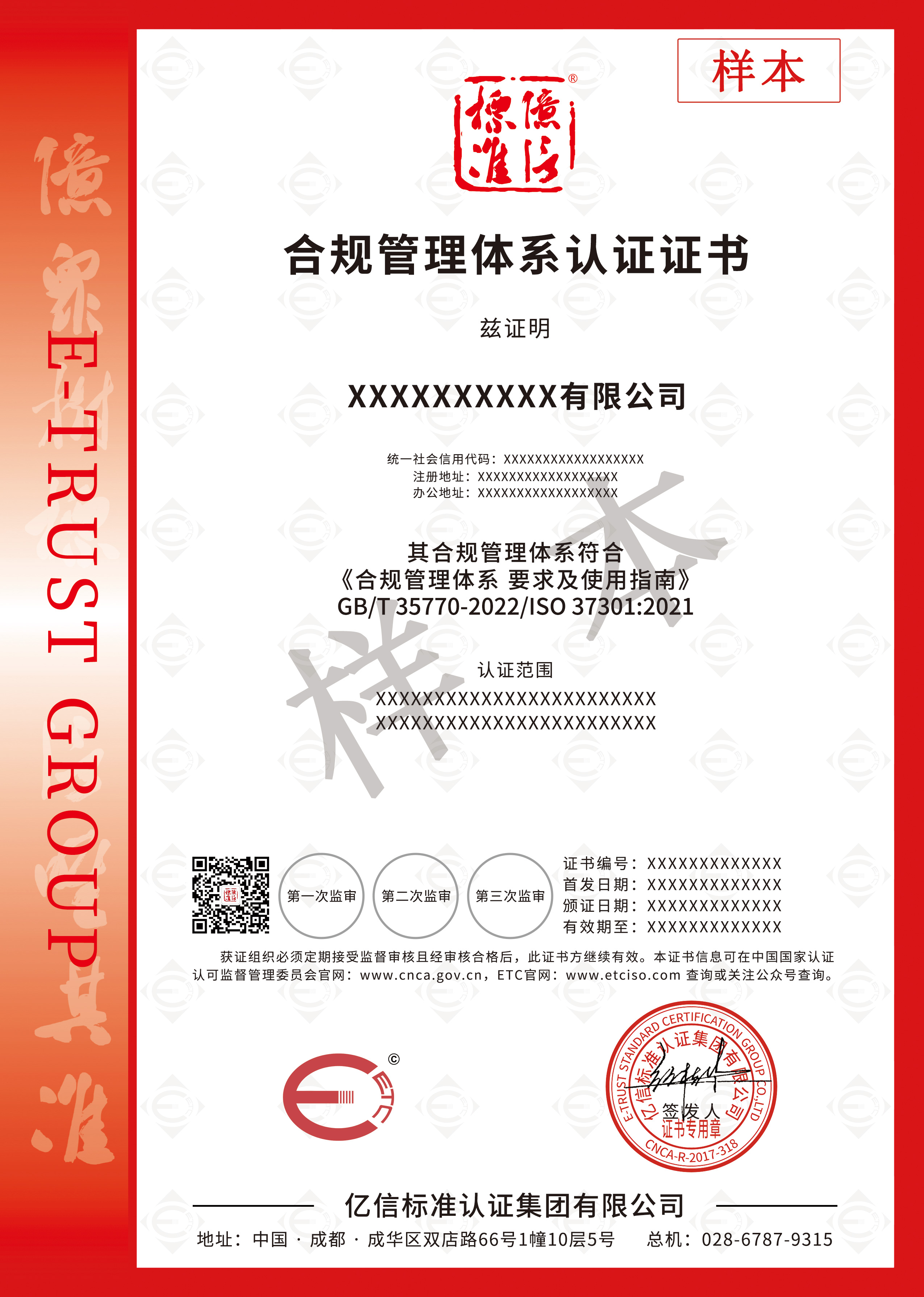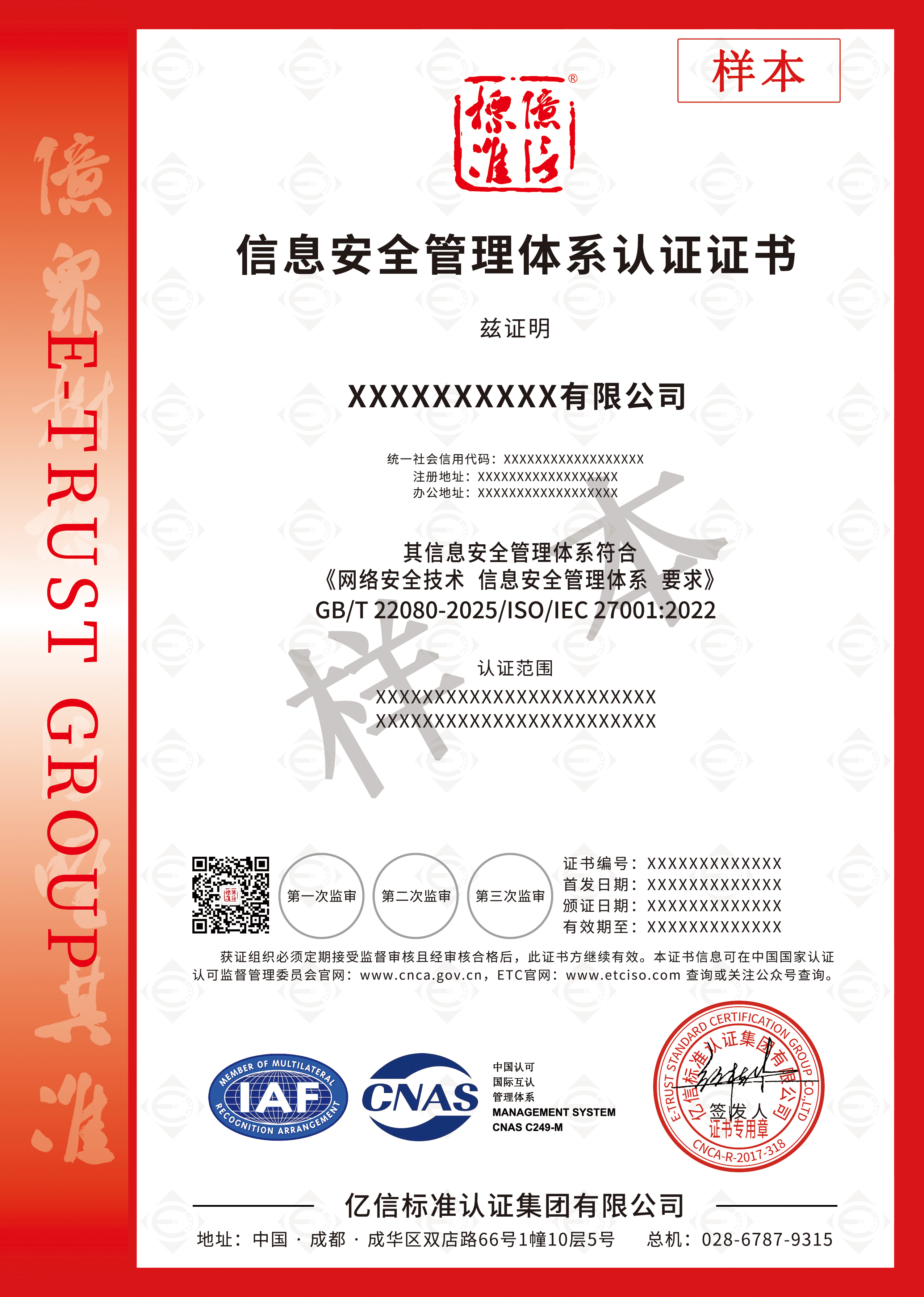 亿信标准认证集团起步于2005年,总部位于天府之国成都,已进驻包括四川、重庆、云南、贵州、浙江等多个省、市,是中国NQI(国家质量基础设施)与TIC(检测、检验与认证)产业头部运营商、标准研制及应用、中国社会企业的积极践行者。